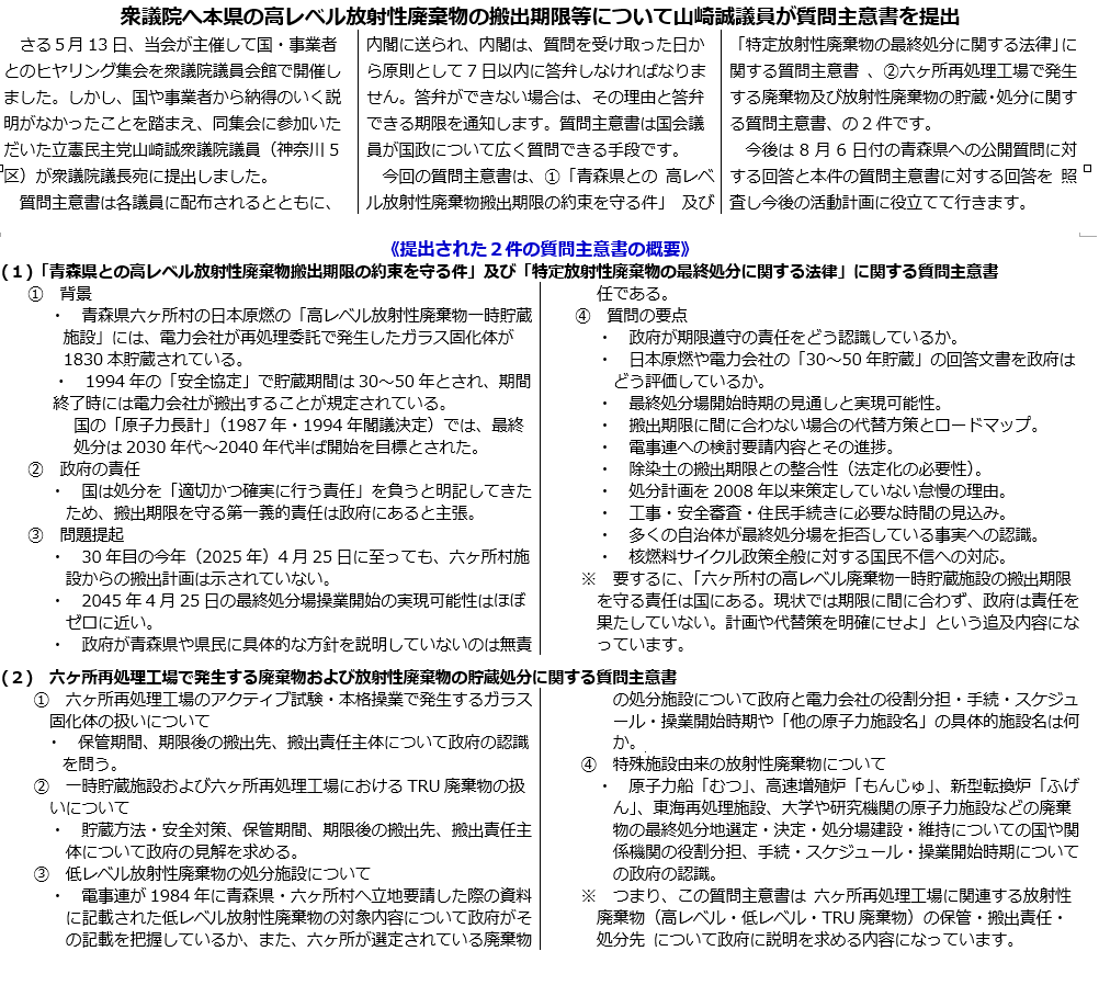 青森県を高レベル放射性廃棄物の最終処分地としない条例」制定を求める県民の会